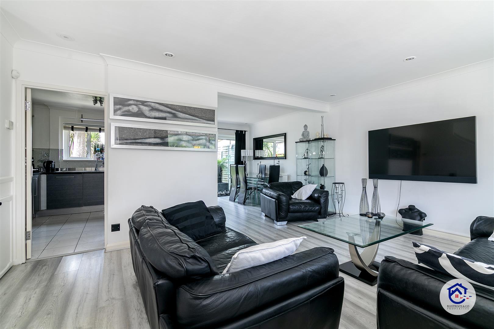 The property features an enormous driveway which can easily fit five cars. As you step into the property you will enter a hallway with access to a spacious reception to the right, hosting a reception and dining area. In addition there is an excellently maintained kitchen.