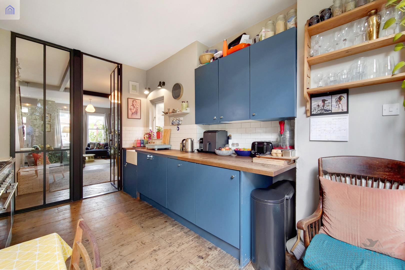 The property offers through lounge, kitchen diner which leads to bifold doors that opens up on a south facing garden, The bi-fold doors are a one of a kind, bespoke design for this house.